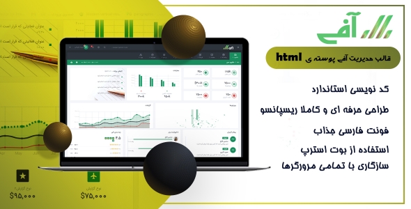 این قالب html یک قالب بسیار پیشرفته برای مدیریت سایت است. این قالب شامل ویژگیهای بسیاری است که در ادامه به آنها اشاره میشود. این قالب با استفاده از کدنویسی استاندارد برنامه نویسی شده است. طراحی قالب بسیار حرفه ای و ریسپانسیو است. فونت های این قالب بسیار جذاب و جالب بوده و به زبان فارسی میباشد. این قالب با تمامی مرورگرها سازگاری داشته و در آن از بوت استرپ استفاده شده است.