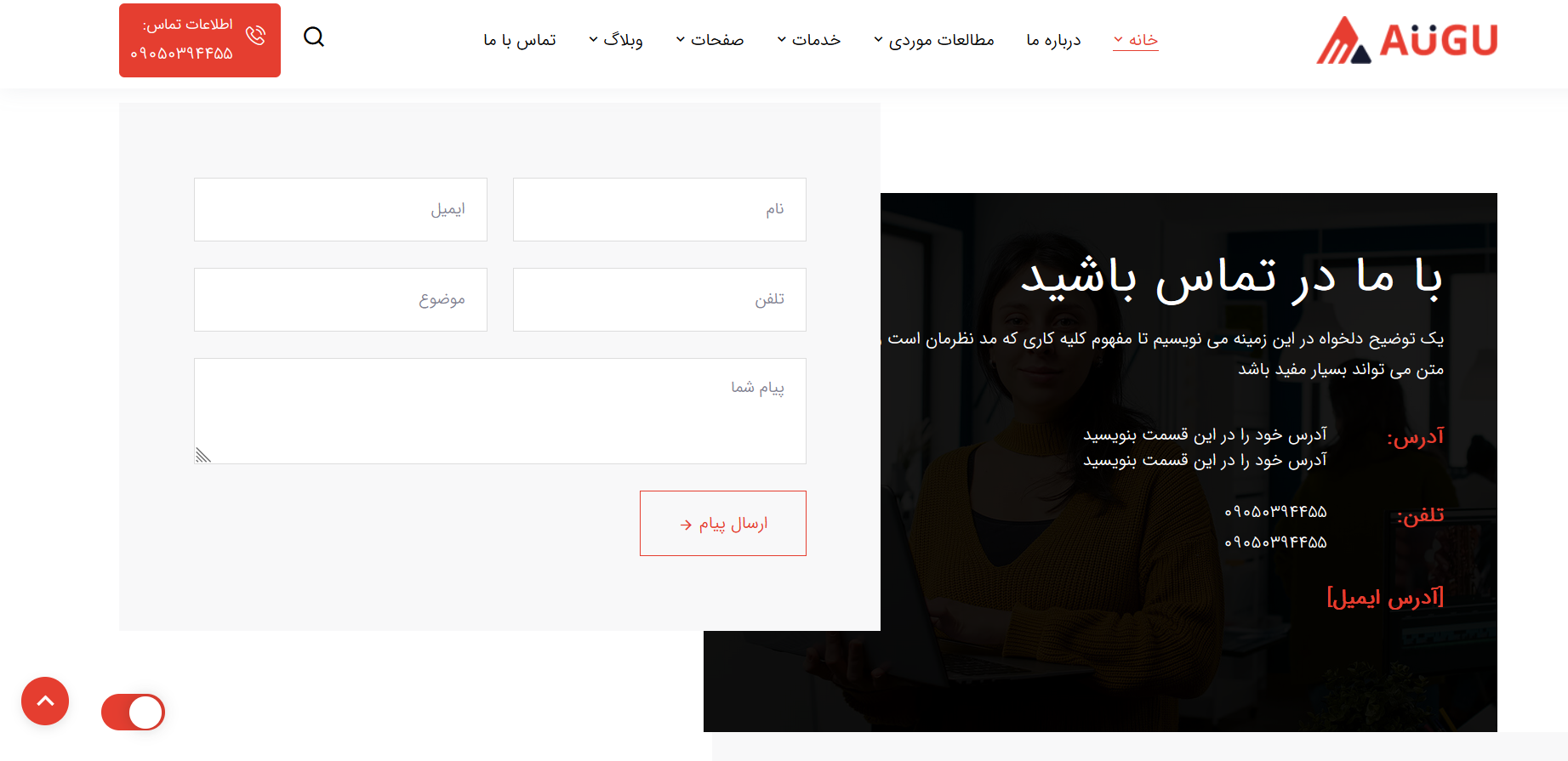 بخش بعدی شامل خدمات تماس با ما میباشد که میتوانید با نوشتن نام نام ایمیل تلفن موضوع و سوال خود به صورت کامل با گروه پشتیبانی وب سایت ارتباط برقرار کنید و به سرعت جواب سوال خود را دریافت کنید.