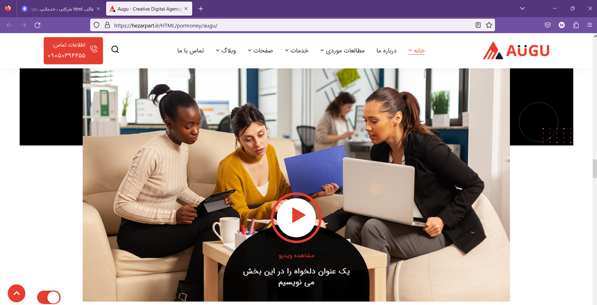 بخش بعدی قالب html شرکتی ، خدماتی ، augu شامل یک ویدیو کوتاه است که محتوای آن موضوعات شرکت شما می باشد. همچنین وجود یک ویدیو در وب سایت اثر مثبتی برروی سئوی سایت دارد.